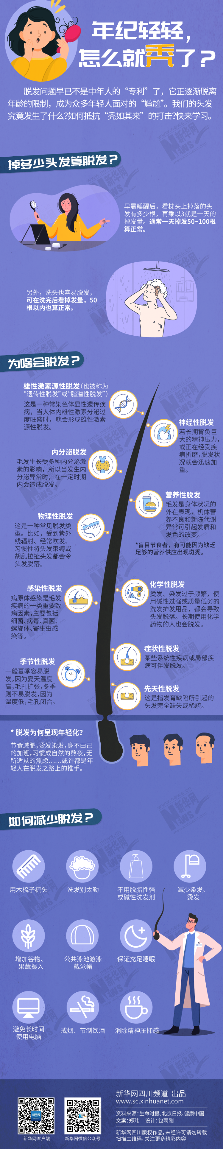 脱发问题早已不是中年人的“专利”了,它正逐渐脱离年龄的限制,成为众多年轻人面对的“尴尬”。我们的头发究竟发生了什么?如何抵抗“秃如其来”的打击?快来学习。