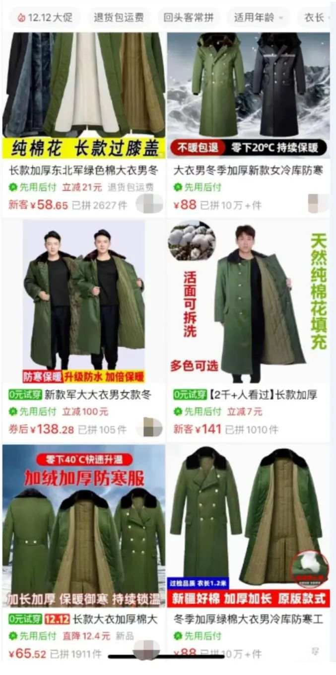 某电商平台上售卖的军大衣